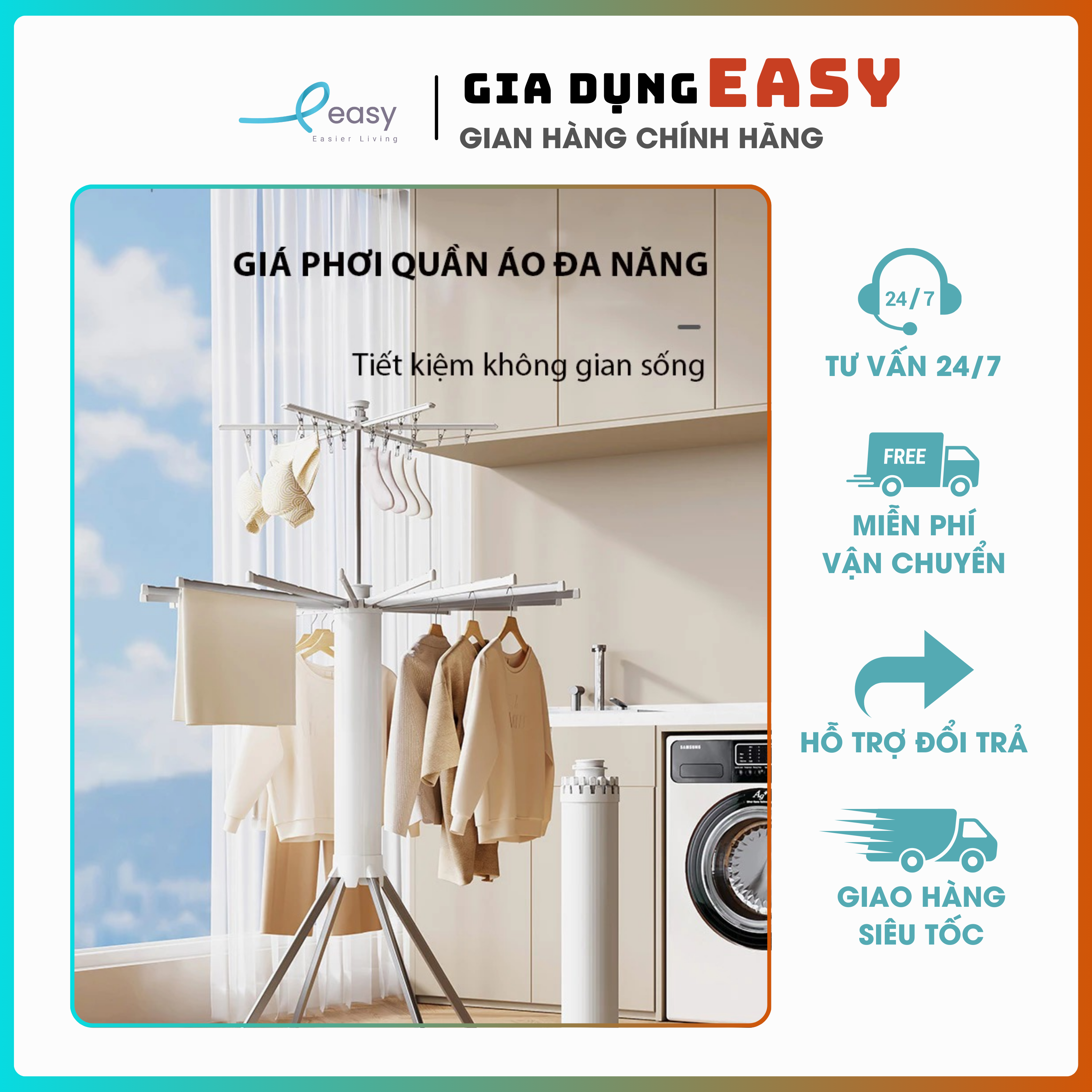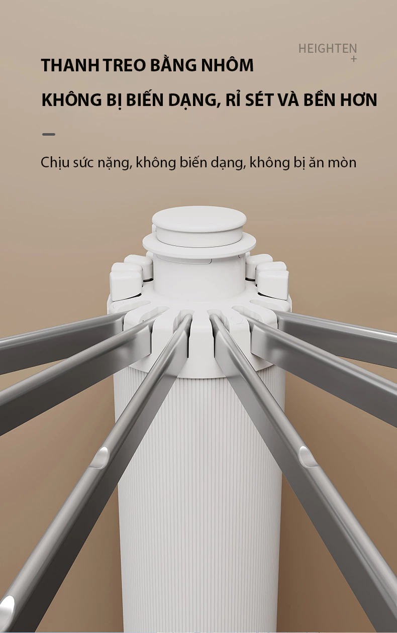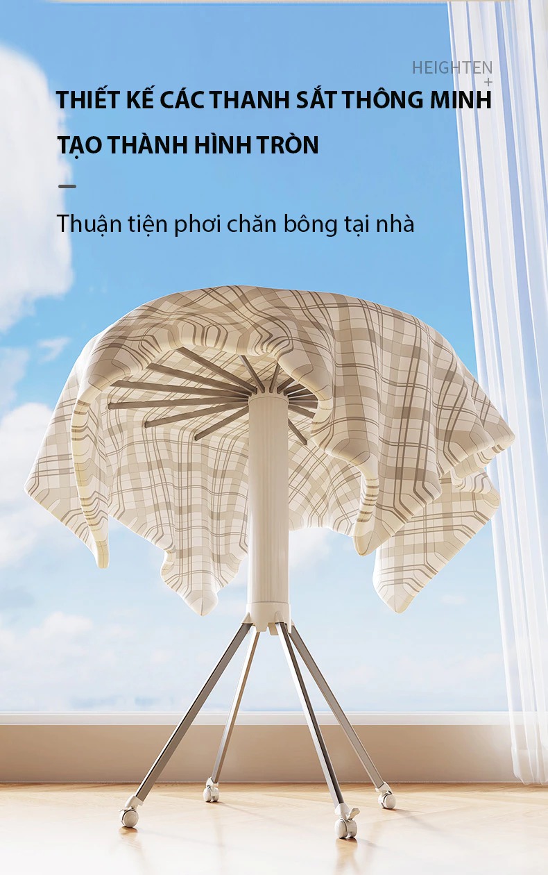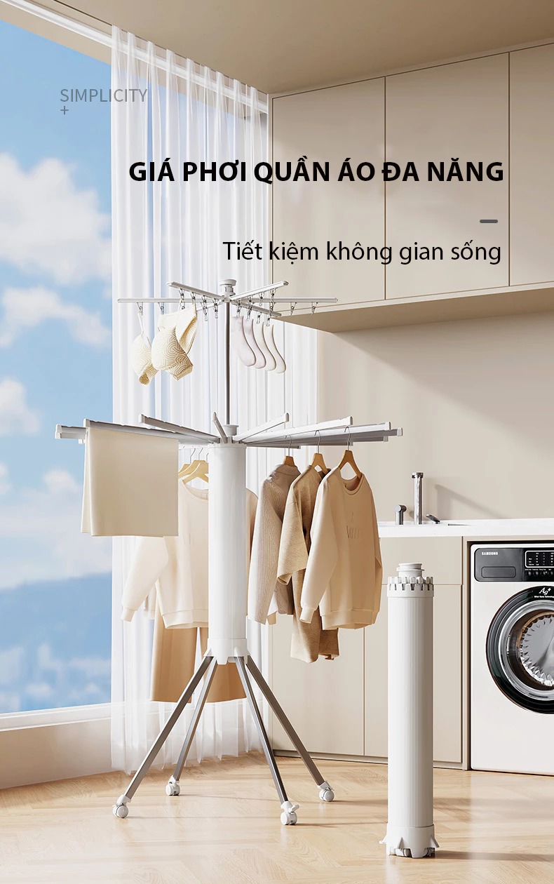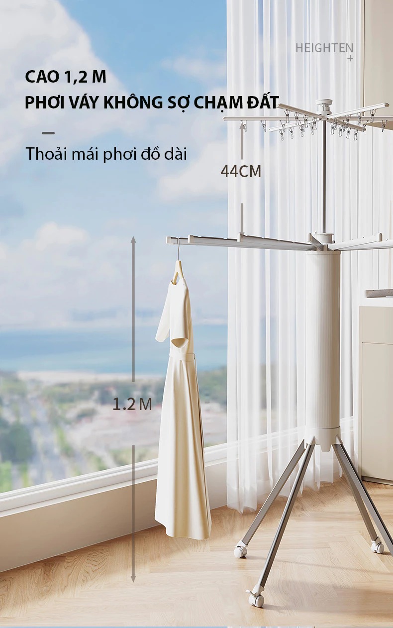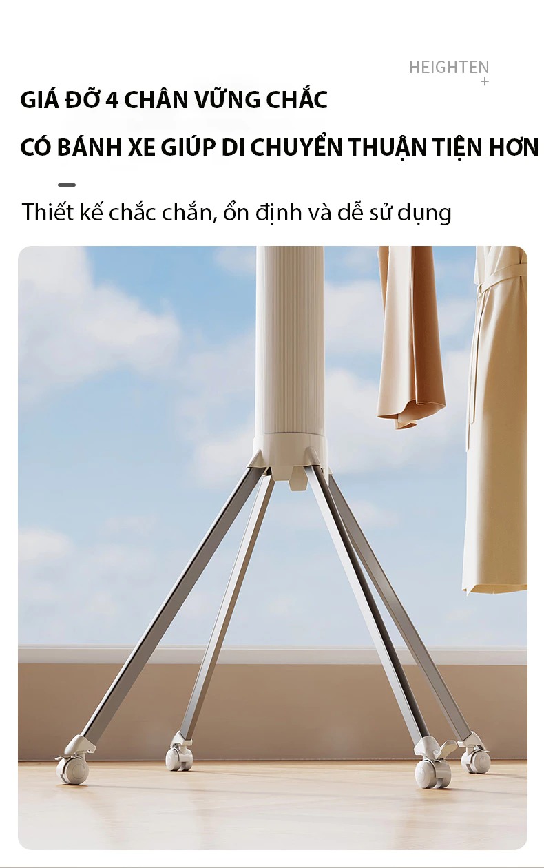 – Dễ dàng di chuyển và lắp đặt: Thiết kế nhẹ nhàng, di động, dễ dàng lắp đặt ở bất kỳ vị trí nào trong nhà, như phòng ngủ, ban công hay phòng tắm.
