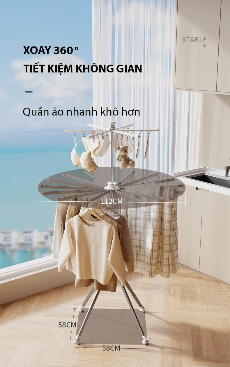 – Thiết kế thông minh, tiết kiệm diện tích: Cây treo quần áo có thể gấp gọn linh hoạt, giúp bạn tận dụng tối đa không gian trong căn hộ chung cư hay nhà có diện tích hạn chế.