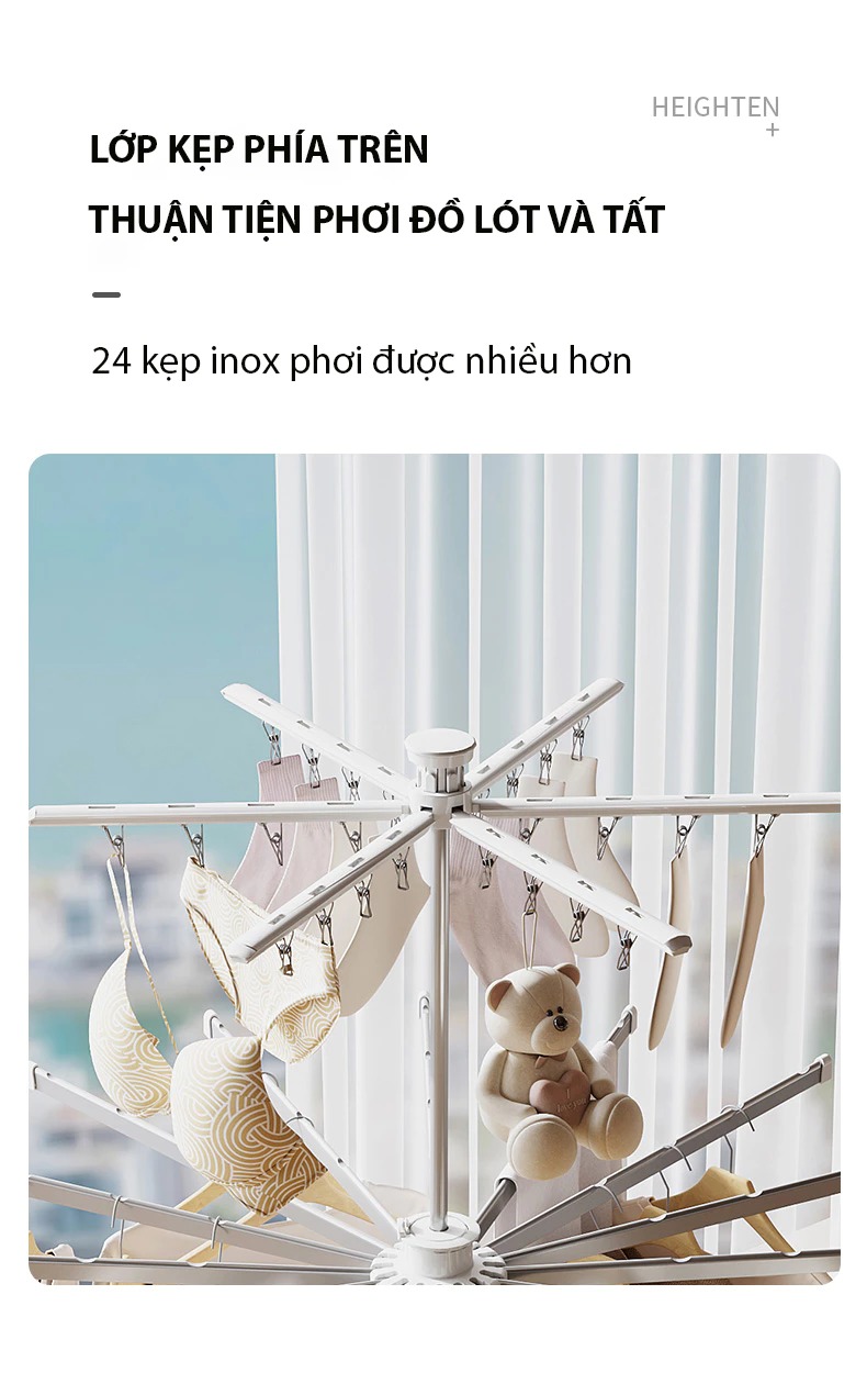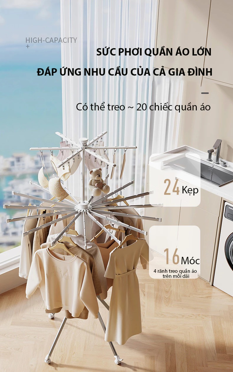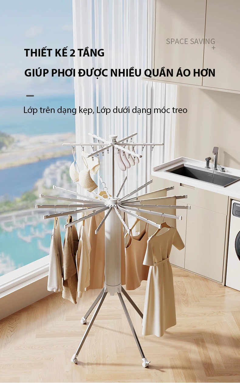 Cây treo quần áo gấp gọn 24 kẹp, 2 tầng xoay 360 độ